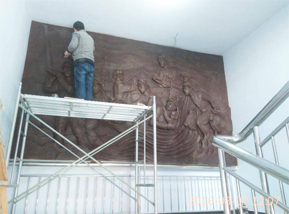 原創(chuàng)消防題材玻璃鋼浮雕,效果為仿銅色。