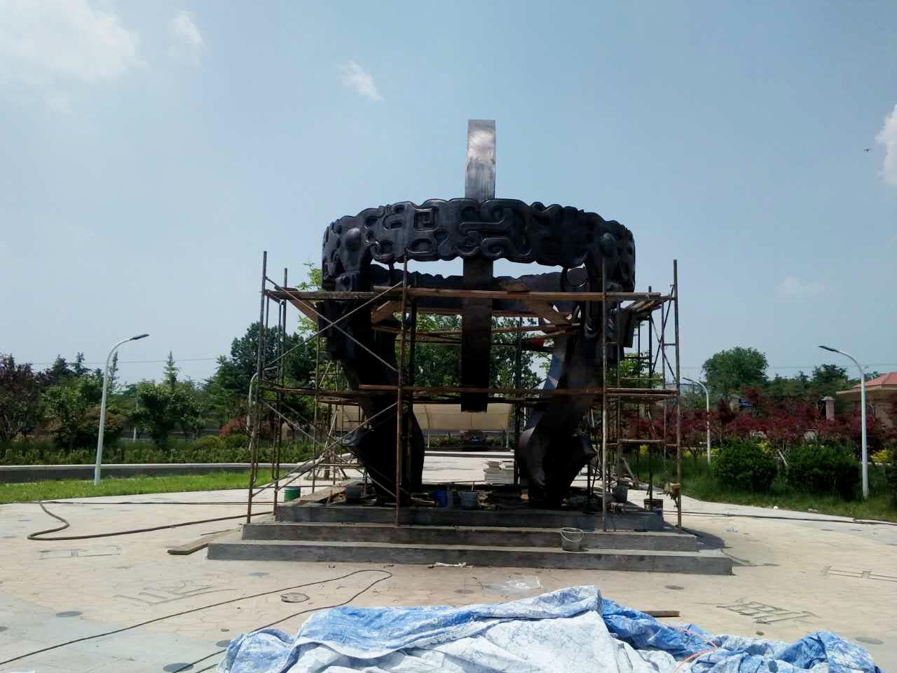 簡(jiǎn)要技術(shù)要求:鍛銅渾天儀景觀小品設(shè)計(jì)、制作與安裝,采用厚度1.5-2.0mm紫銅鍛造。