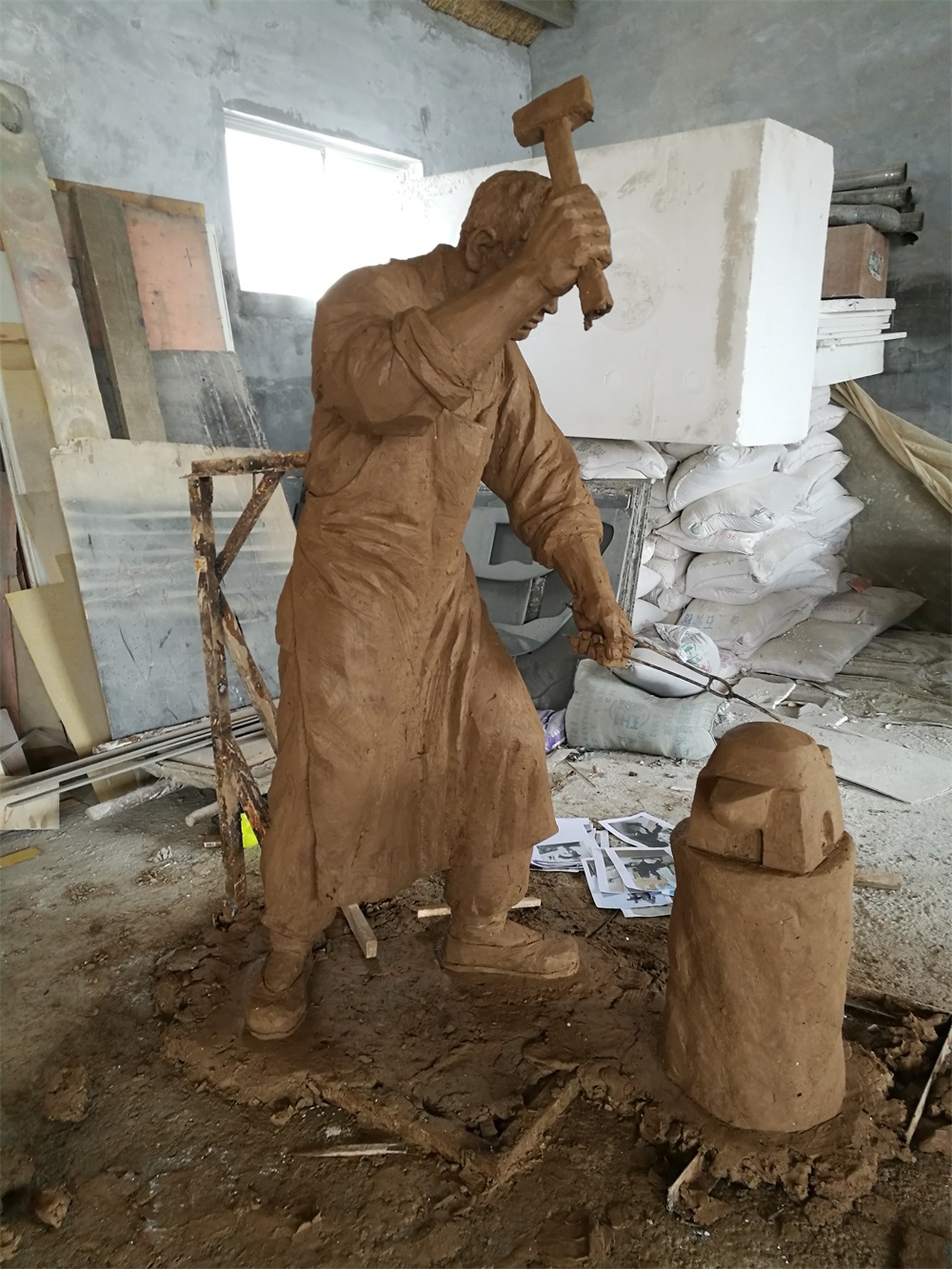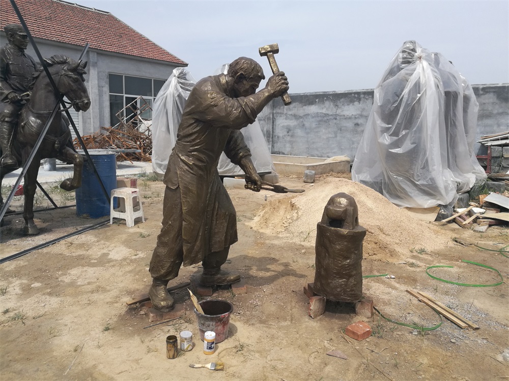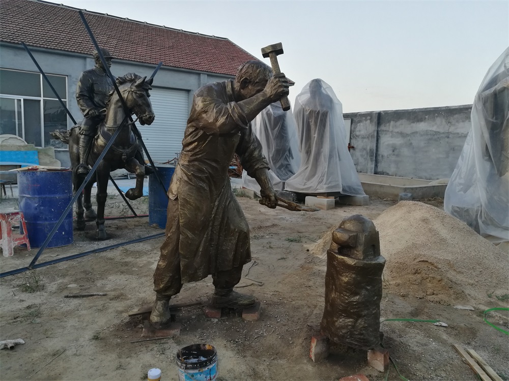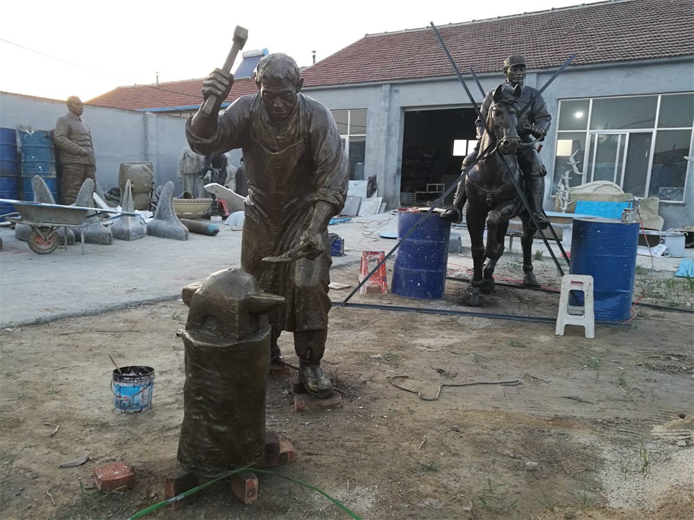 雕塑說明:騎馬將軍雕塑高2.6米,成品為玻璃鋼工藝制作。該組雕塑是雕塑公司拋開市場環(huán)境,真正藝術化創(chuàng)作的珍貴作品。打鐵匠雕塑,高1.9米,同樣采用玻璃鋼工藝制作。兩組雕塑的泥塑均有雕塑師張凱完成。未經允許,嚴禁把本相冊圖片用于商業(yè)用途。