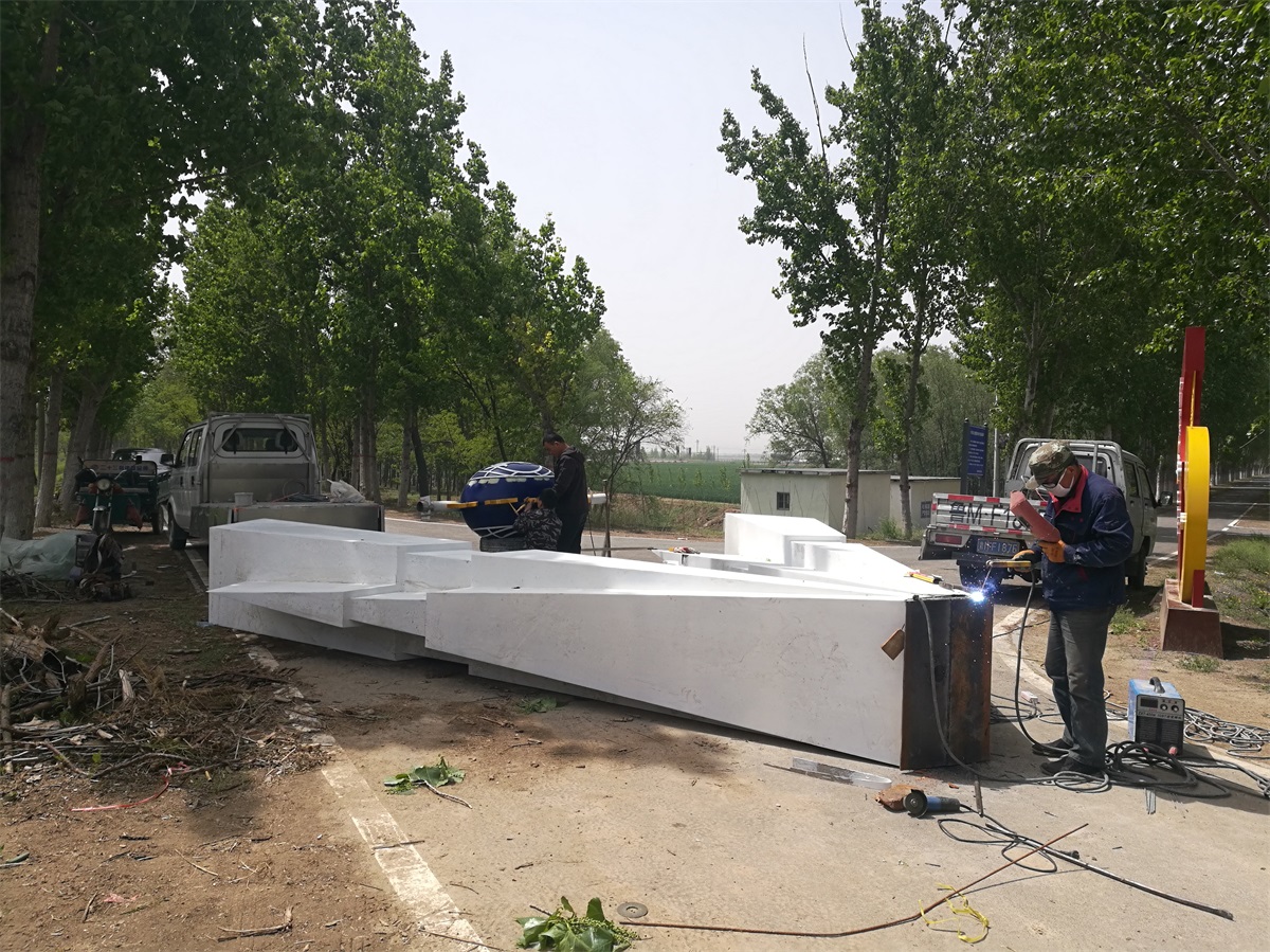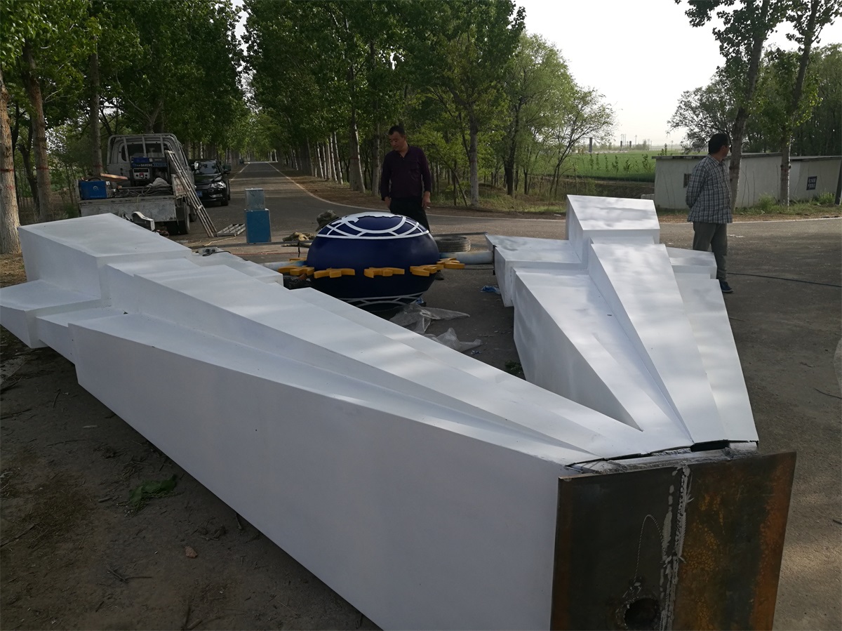 雕塑整體呈扇形構(gòu)造,代表黃河三角洲扇形外貌;兩側(cè)形似利劍,寓意治黃工作者敢于“亮劍”的拼搏精神; 中間球形,寓頂點之意;其上印制有黃河水利委員會標(biāo)志,圍繞十只和平鴿。寓意以治黃事業(yè)為中心、人民幸福、和平安寧、生態(tài)保護、空間均衡;主體色彩以紅、黃、藍搭配。紅色代表黨建引領(lǐng),黃、藍象征海河交匯。寓意治黃事業(yè)在中國共產(chǎn)領(lǐng)導(dǎo)下開創(chuàng)新篇章。