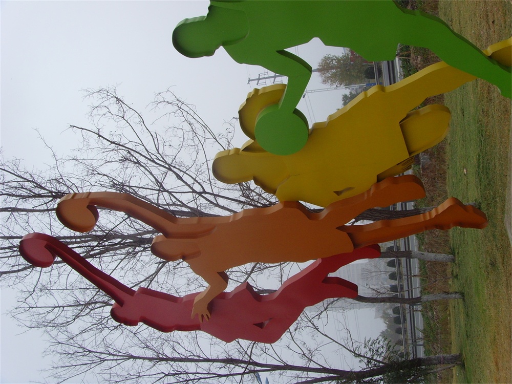 2012年7月,安裝于濱州市經(jīng)濟(jì)開(kāi)發(fā)區(qū)黃河明珠文化廣場(chǎng)。雕塑材質(zhì)為不銹鋼,手工鍛造成型,表面氟碳漆著色。