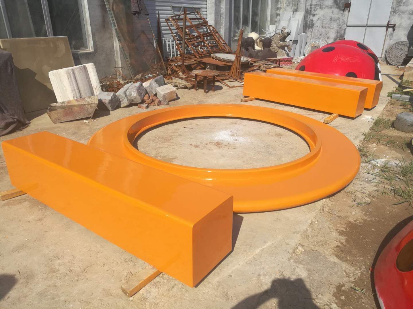項目案例->玻璃鋼座椅樹池七星瓢蟲雕塑
