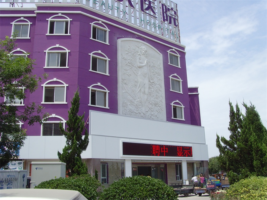 大型歐式風(fēng)格女人體裝飾砂巖雕塑(浮雕),高9米,寬6米。材質(zhì):人造砂巖。2014年5月,安裝于濱州黃河八路渤海五路交叉口麗人醫(yī)院。